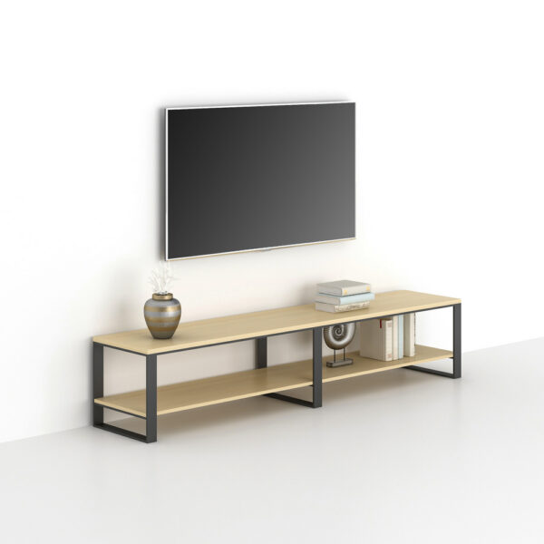 Material: High Density Fiberboard (HDF) TV Table Top & Layer Panel with Melamine Laminate & PVC Edge, Seel Frame with Powder-coated Finish; Antirust, strong, durable